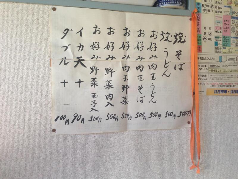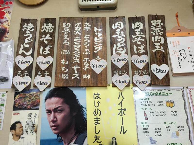 不思議なのは麺を入れない場合。「肉玉そば」から「そば」を抜くと「肉玉」になるはずが、麺抜きは「野菜肉玉」となる。これまでなりを潜めていた「野菜」の登場である。かといって、そばやうどんが入る時に野菜が抜かれているわけではない。野菜が入っているのに、なぜか名前に「野菜」がつかないのだ。それが麺が抜かれたとたん「野菜」が現れてくる。なぜだろう。